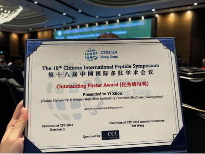 Congrats to Dr. Zhou, who just presented the "Non-interconverted Uroguanylin" and won the outstanding poster award of 18th CPS in HongKong.